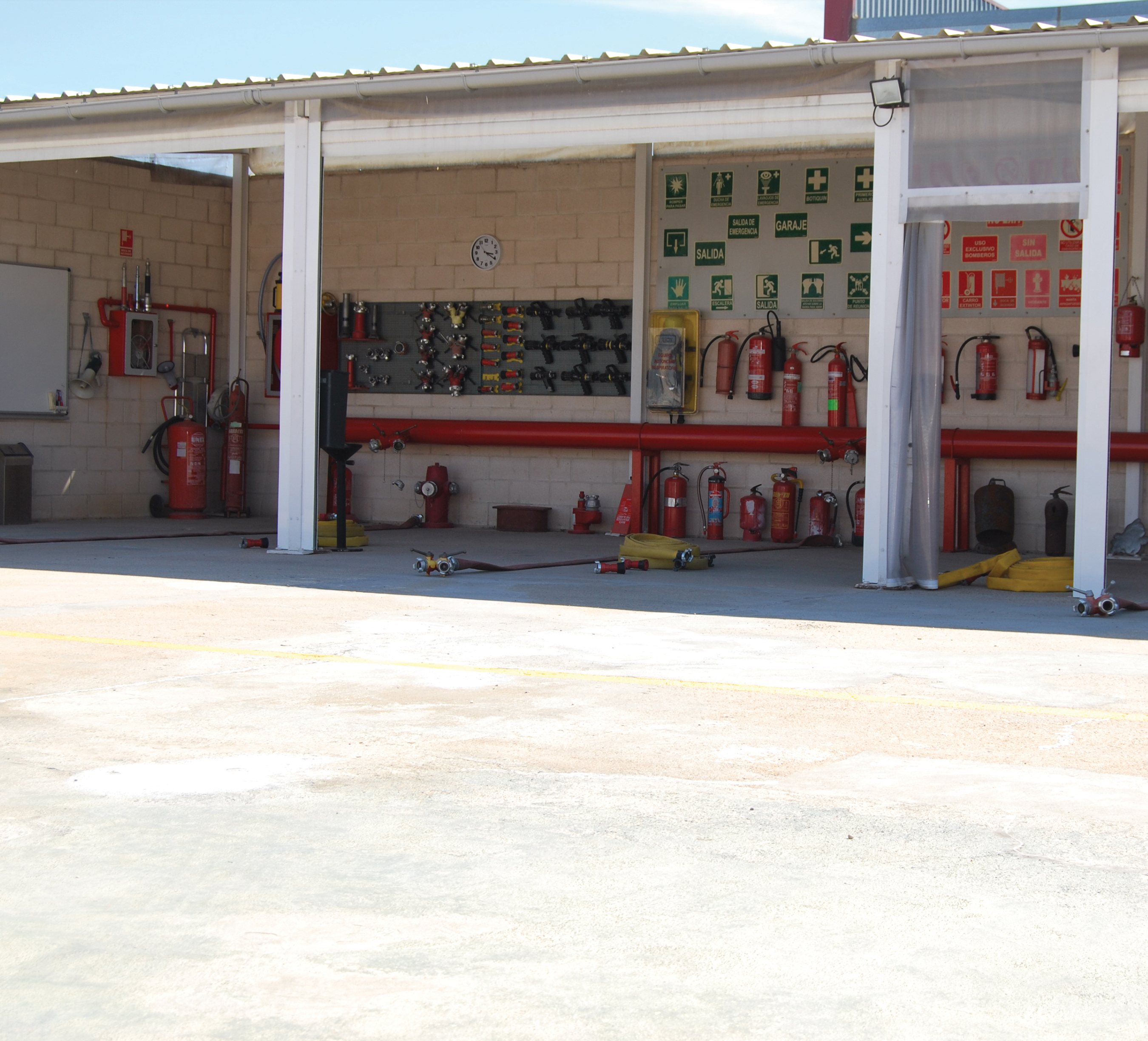 Disponemos de un amplio espacio totalmente adecuado y homologado para prácticas de fuego real,fuegos en interior, rescate y evacuación de víctimas, espacios confinados, ...