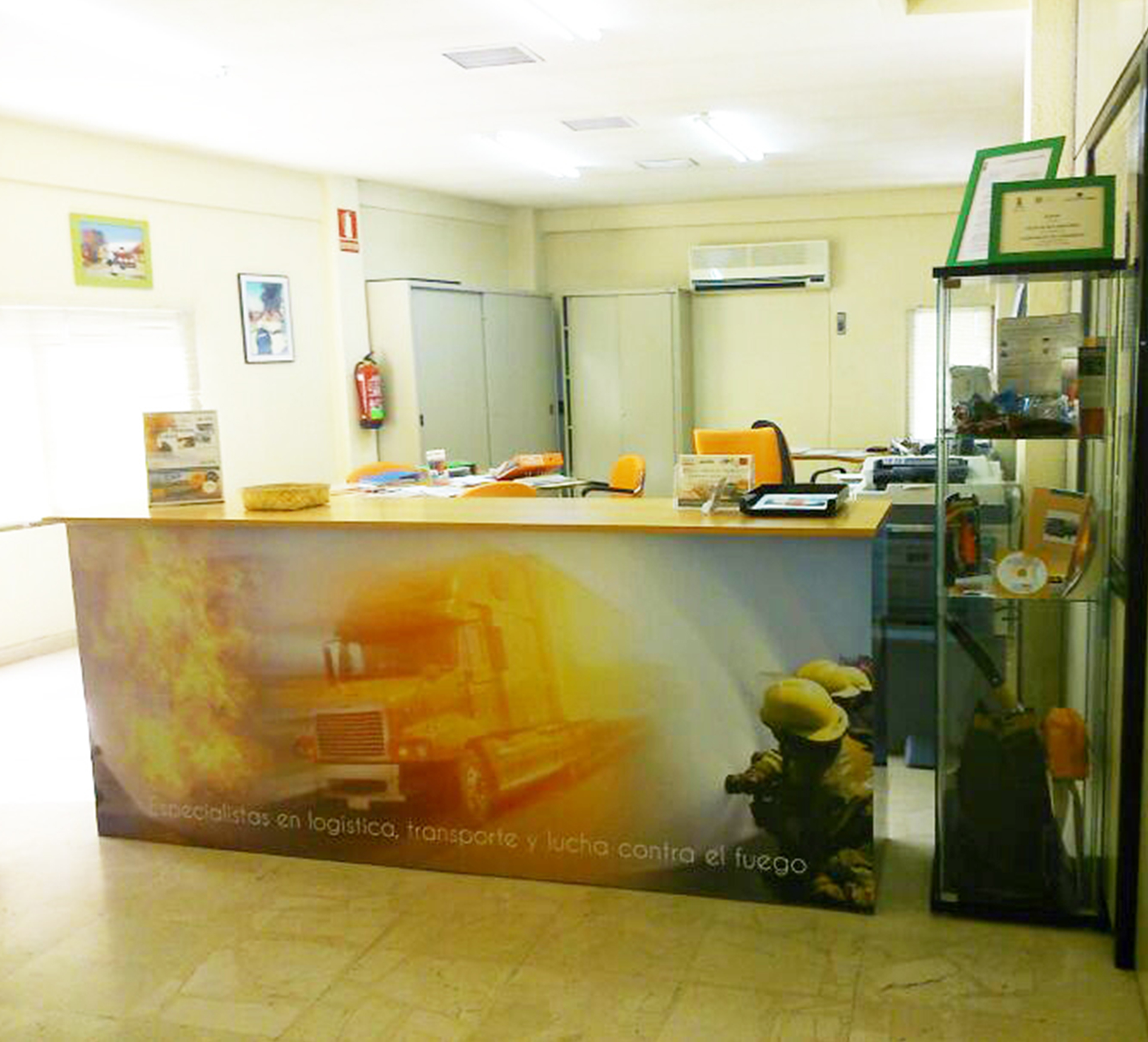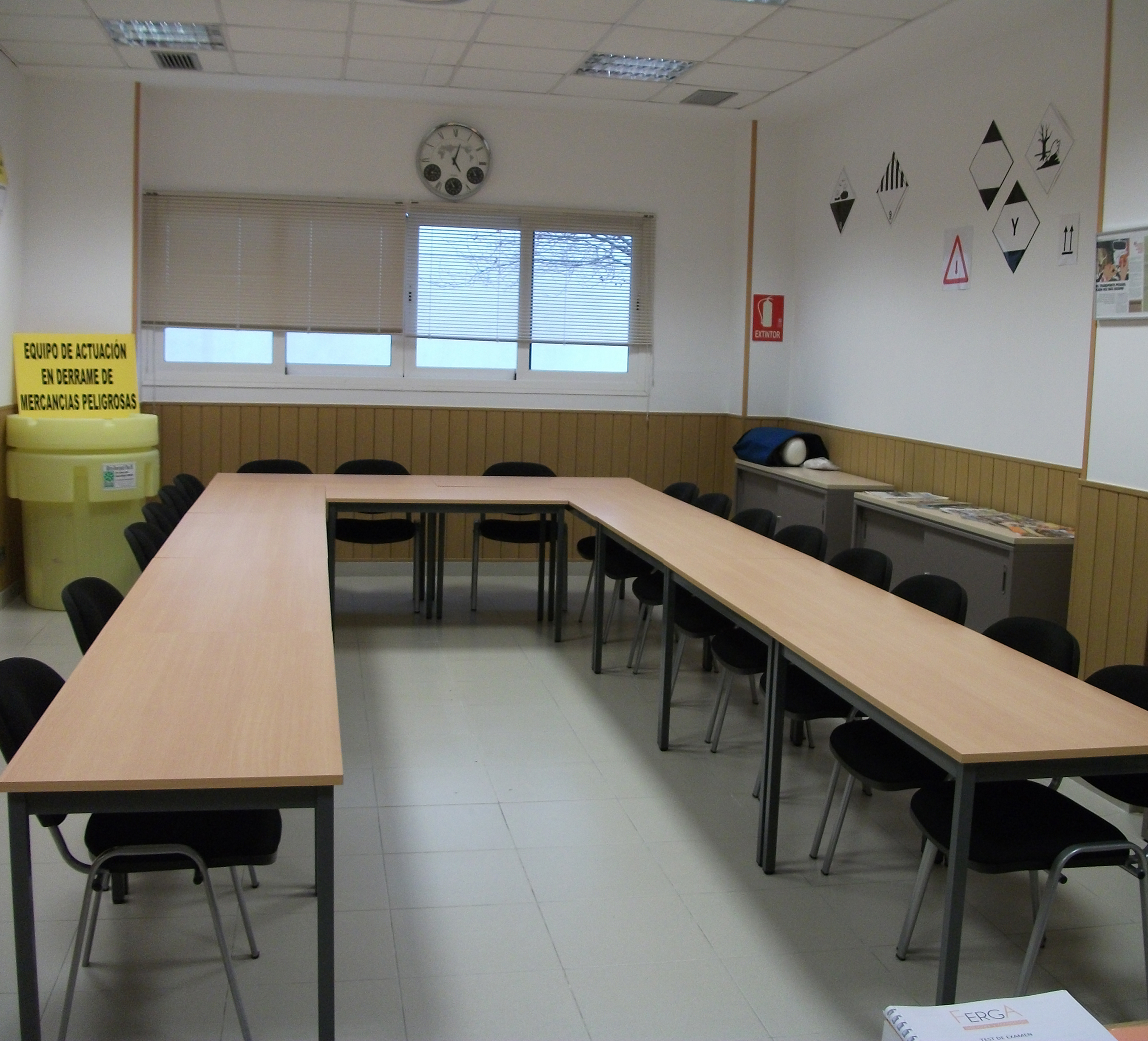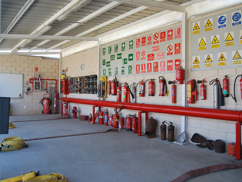 Aula con cerramiento para mayor confort de los alumnos, con todos los materiales y equipamiento de extinción de incendios para un adecuado inicio de la formación práctica.